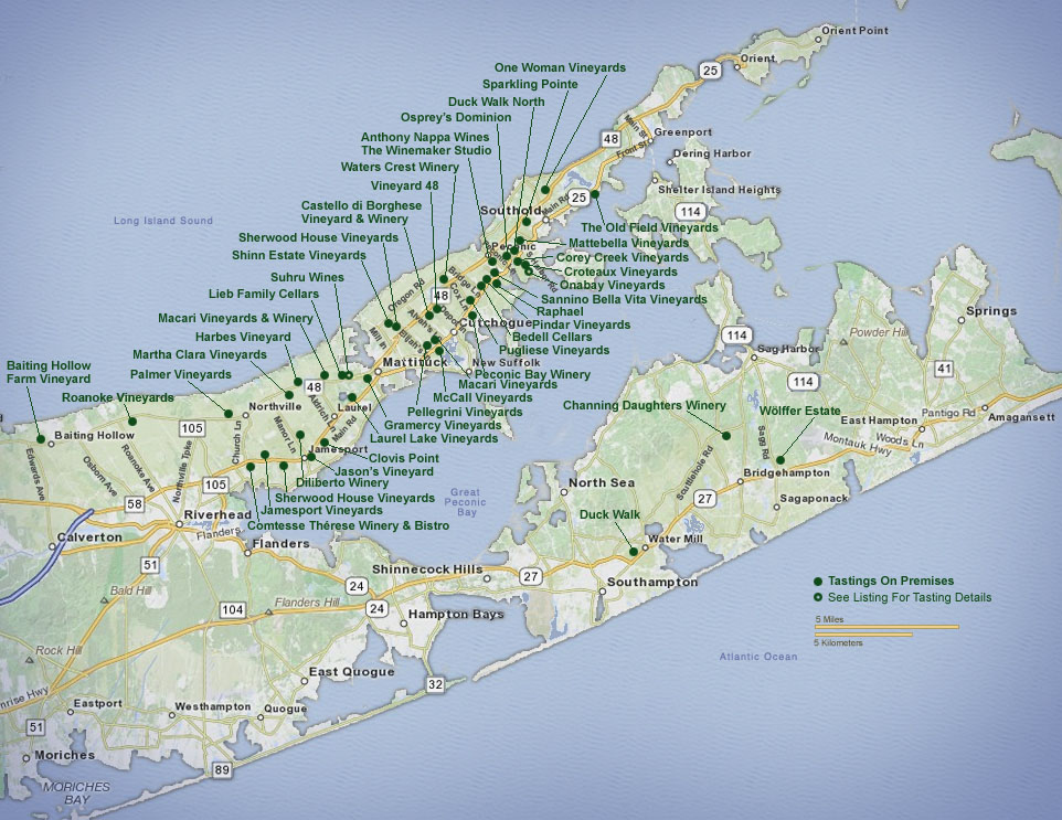 The map is from the Long Island Wine Council. Many wineries have live music, call for their schedule.